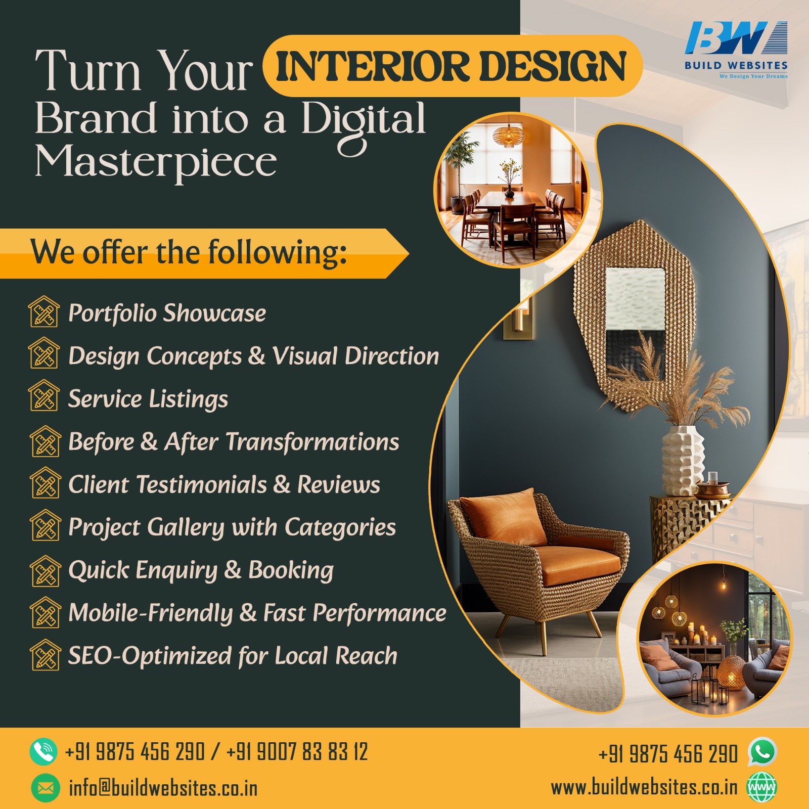 ย We specialize in Interior Website Design & Development that highlights your creativity, builds trust, and converts visitors into clients. Designing websites for interior designers that impress at first clickย ![]()